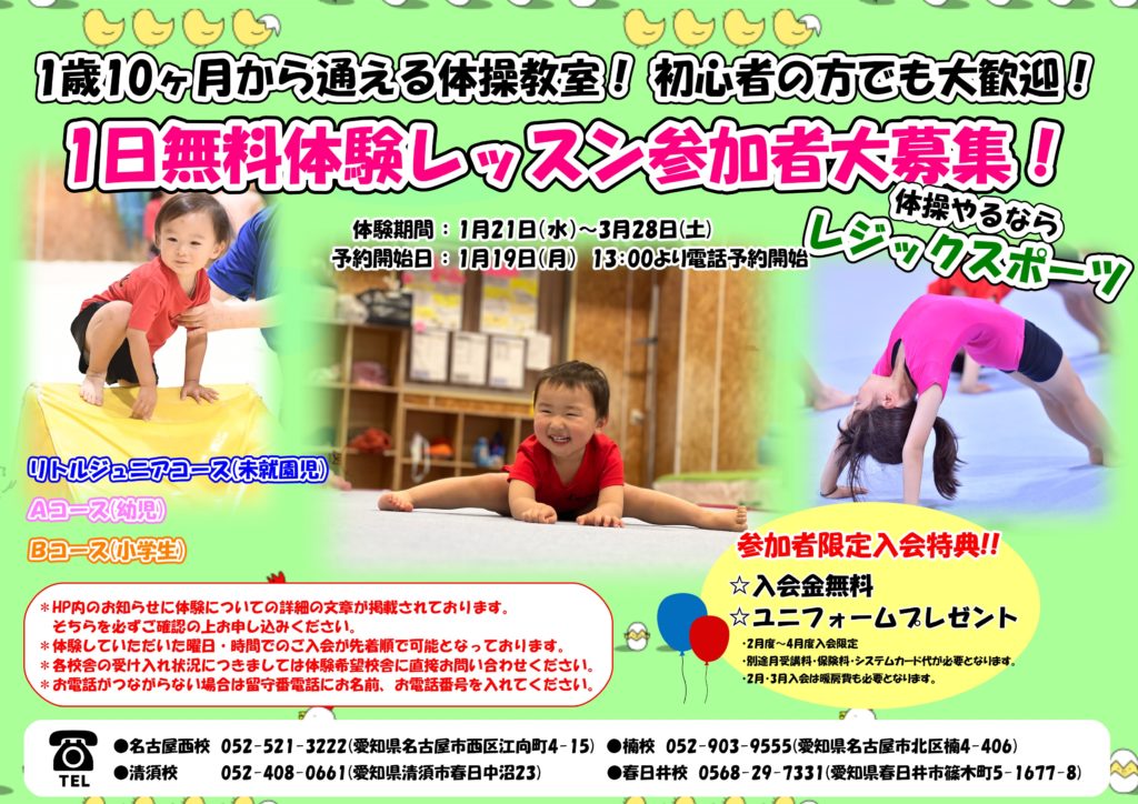 お待たせいたしました!!一日無料体験キャンペーンの開催が決定しました!